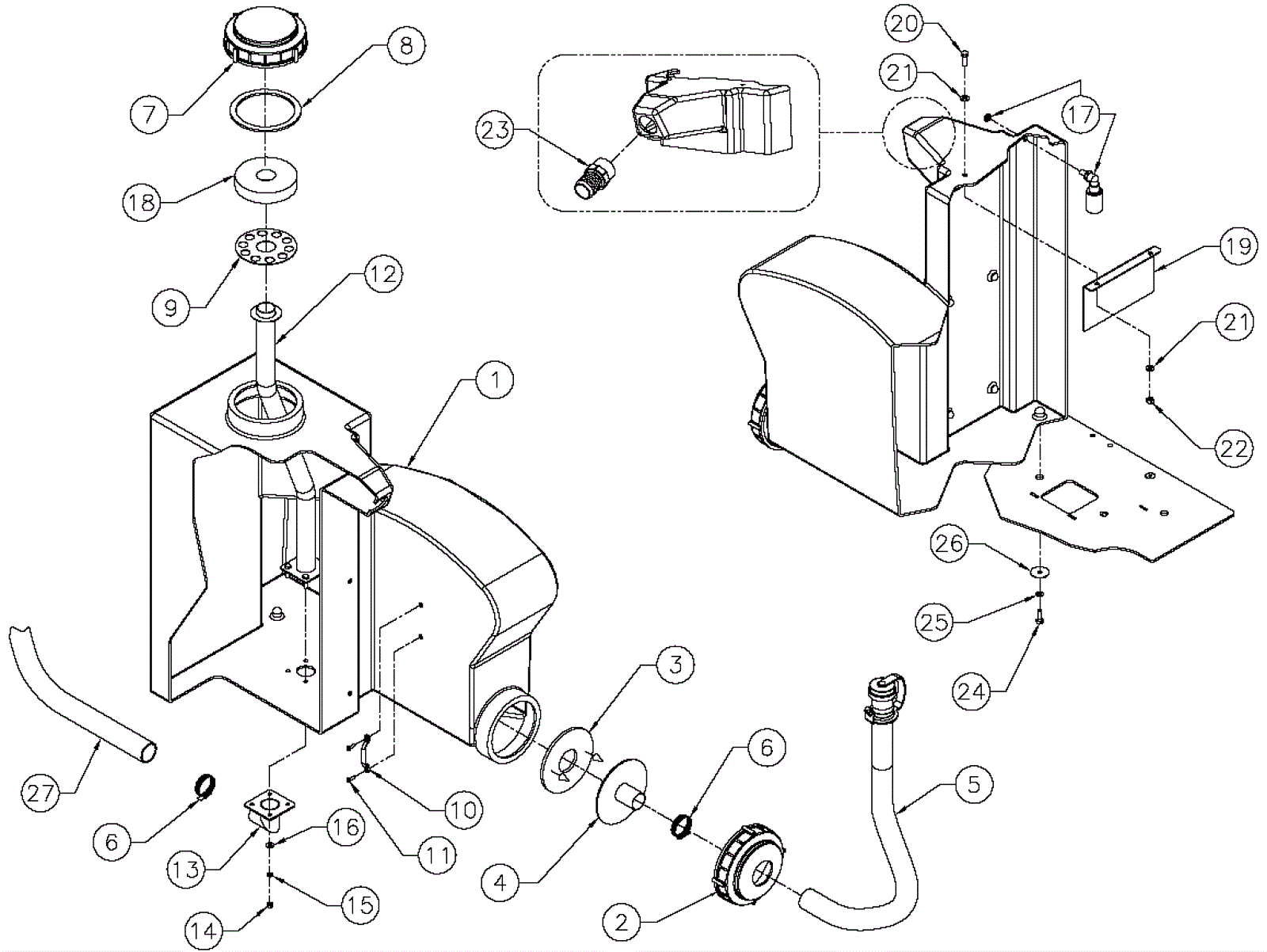 Bottom recovery tank cap |