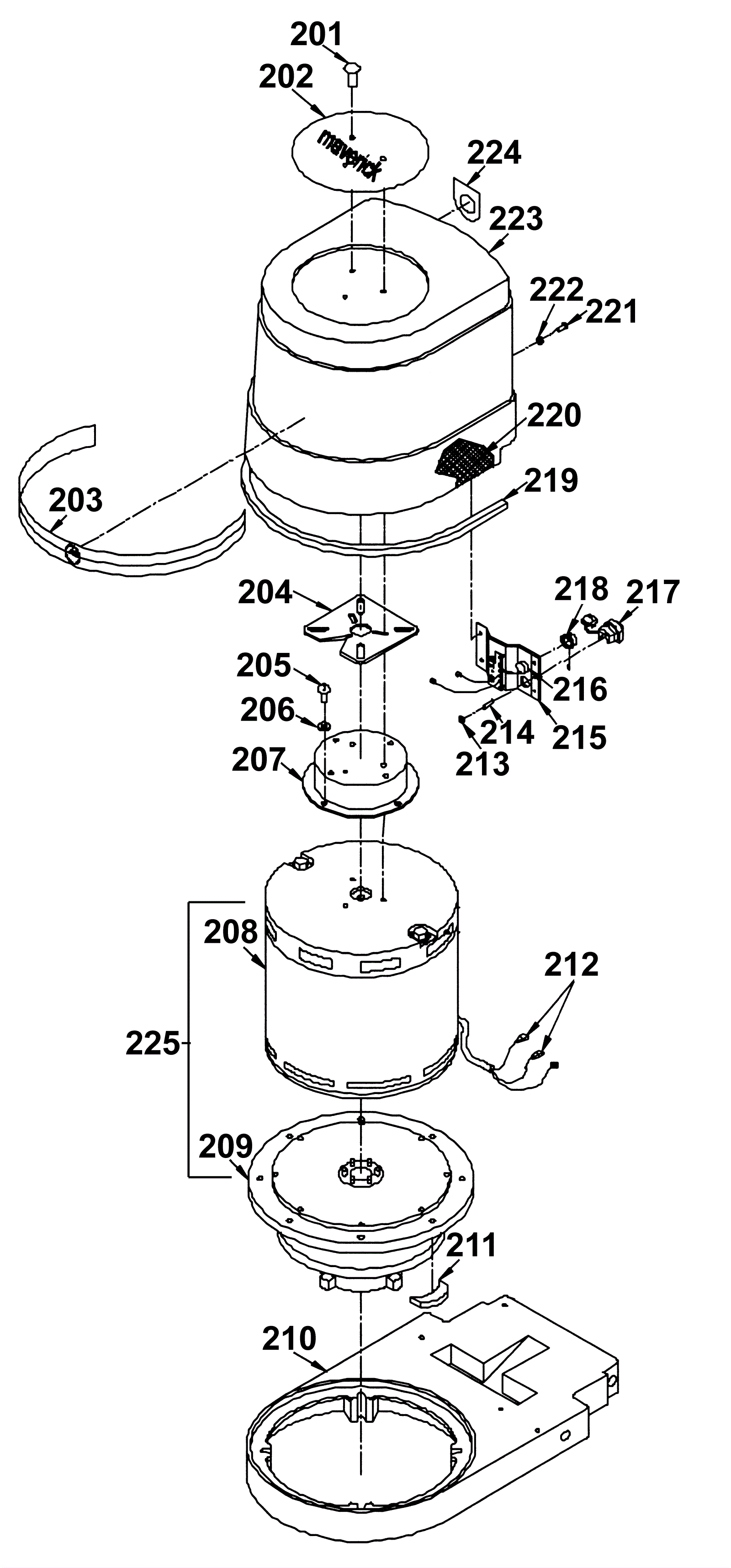 201 | 999-0454 | Screw 10-24 x 1/2 truss head phillips zinc plated | $0.99 | 3 |  | ships same day | 202 | N/A | Not available | Call for price | 1 | Decal kit | usually ships 3-26 days | 203 | N/A | Not available | Call for price | 1 | Decal kit | usually ships 3-26 days | 204 | 164-5008 | Cork pad | $4.43 | 1 |  | usually ships 1-5 days | 205 | 999-1366 | Screw 8-32 x 3/8 round head phillips stainless steel | $1.32 | 4 |  | ships same day | 206 | 999-0092 | Washer #8 internal star lock zinc plated | $0.99 | 4 |  | ships same day | 207 | 164-4445 | Standoff | $108.85 | 1 |  | usually ships 1-5 days | 208 | 164-4440 | Ohio motor 115v (OBSOLETE) | $1,060.90 | 1 |  | usually ships 1-5 days | 209 | 164-5100 | Gear Research gear box assembly | $458.70 | 1 |  | usually ships 1-5 days | 210 | 164-5119 | Base | $424.69 | 1 |  | usually ships 19-25 days | 211 | 164-5016 | Rubber mount pad | $2.95 | 4 |  | usually ships 19-25 days | 212 | 164-4644 | Female terminal | $3.72 | 2 |  | usually ships 19-25 days | 213 | 999-0239 | Nut 10-32 k-lock zinc plated | $0.99 | 1 |  | ships same day | 214 | 164-6808 | Screw 10 x 3/4 set cup | $7.38 | 1 |  | usually ships 19-25 days | 215a | 164-4444 | Speed control with bracket | $372.25 | 1 | Includes 215b and 216 | usually ships 19-25 days | 215b | 164-4443 | Speed control bracket | $70.26 | 1 |  | usually ships 1-5 days | 216 | 164-4450 | Potentiometer | $81.41 | 1 |  | usually ships 19-25 days | 217 | 164-0796 | Heyco strain relief | $4.31 | 1 |  | usually ships 19-25 days | 218 | 164-1087 | Knob with set screw | $14.05 | 1 |  | usually ships 19-25 days | 219 | 164-4619 | Gasket neoprene 3/16 x 5/16 | $3.20 | 2 |  | usually ships 19-25 days | 220 | 164-4448 | Inside cover | $76.62 | 1 |  | usually ships 1-5 days | 221 | 999-0543 | Screw 10-32 x 3/8 truss head phillips zinc plated | $0.99 | 4 |  | ships same day | 222 | 999-0089 | Washer #10 internal star lock zinc plated | $0.99 | 4 |  | ships same day | 223 | 164-4441 | Motor cover with baffle | $181.74 | 1 |  | usually ships 19-25 days | 224 | N/A | Not available | Call for price | 1 | Speed control decal kit | usually ships 3-26 days | 225 | 164-4481 | Motor and gear (Maverick 300) | $2,891.87 | 1 |  | usually ships 1-5 days |