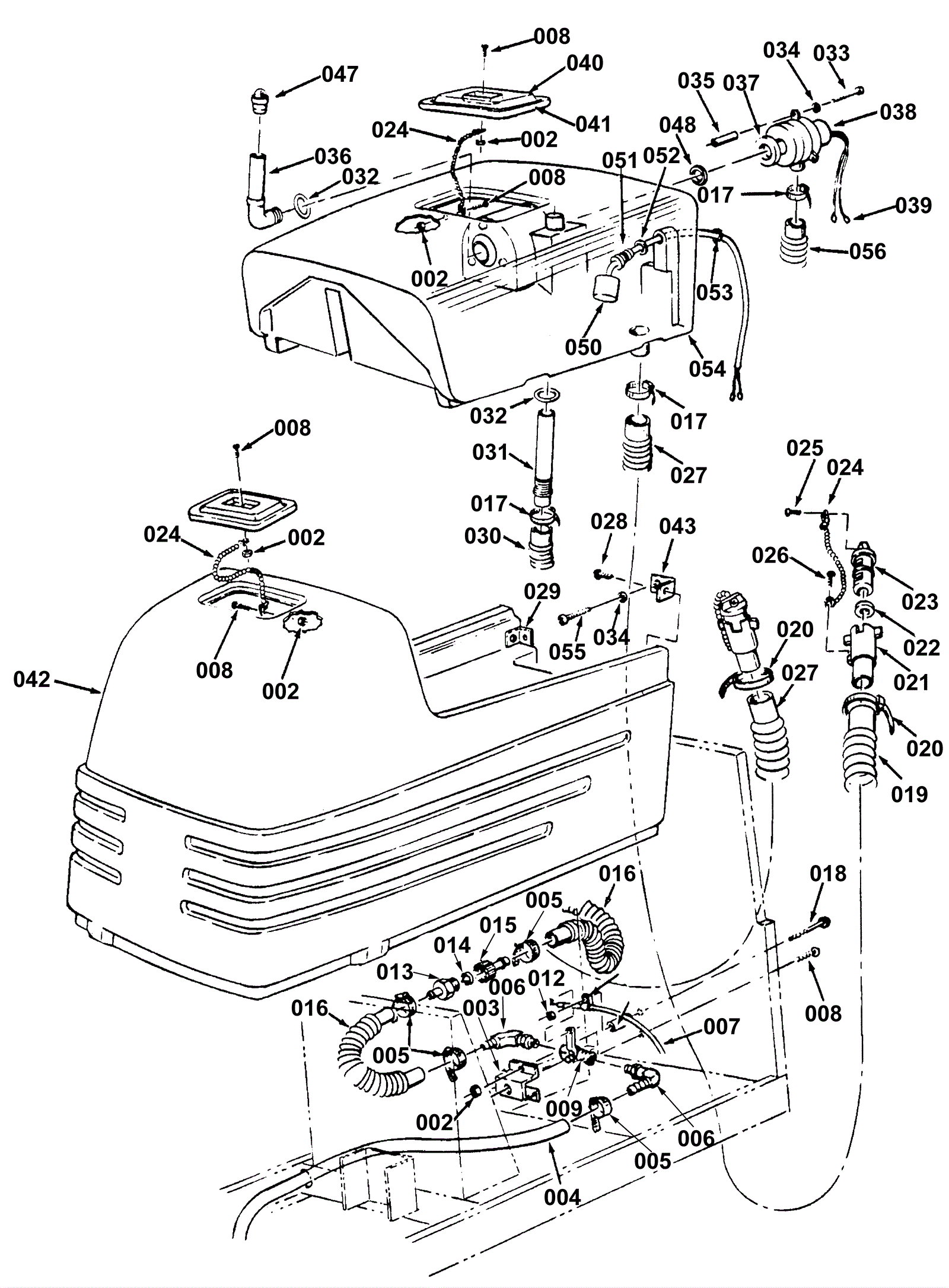 002 | 999-0211 | Nut 5/16-18 hex nylon insert lock zinc plated | $0.99 | 6 |  | ships same day | 003 | 170-0259 | Bracket (OBSOLETE) | $20.79 | 1 |  | usually ships 1-5 days | 004 | 170-0260 | Solution hose | $55.12 | 1 |  | usually ships 13-18 days | 005 | 997-2002 | Hose clamp #6 | $2.15 | 6 |  | ships same day | 006 | 170-0261 | Elbow | $20.23 | 2 |  | usually ships 13-18 days | 007 | 170-0028 | Solution control cable assembly | $67.96 | 1 |  | usually ships 13-18 days | 008 | 999-0267 | Screw 10-24 x 1/2 pan head phillips zinc | $0.99 | 6 |  | ships same day | 009 | 170-0006 | Manual solution valve | $79.22 | 1 |  | usually ships 13-18 days | 010 | 170-0262 | Spacer | $11.75 | 1 |  | usually ships 1-5 days | 011 | 170-0263 | Cable clip | $11.75 | 1 |  | usually ships 1-5 days | 012 | 999-0294 | Nut 1/4-20 hex nylon lock type NE stainless steel | $1.18 | 1 |  | ships same day | 013 | 170-0264 | Hose barb | $11.35 | 1 |  | usually ships 13-18 days | 014 | 164-0065 | Filter screen | $3.20 | 1 |  | ships same day | 015 | 164-0182 | Hose barb and collar | $10.59 | 1 |  | ships same day | 016 | 170-0033 | Solution hose | $58.17 | 2 |  | usually ships 13-18 days | 017 | 997-2007 | Hose clamp | $2.07 | 5 |  | ships same day | 018 | 999-1064 | Bolt 1/4-20 x 1 3/4 hex head cap grade 5 zinc plated | $0.99 | 1 |  | ships same day | 019 | 170-0041 | 39 inch drain hose | $135.82 | 1 |  | usually ships 13-18 days | 020 | 164-0218 | Nylon hose clamp | $4.31 | 2 |  | usually ships 19-25 days | 021 | 170-0043 | Drain valve | $27.26 | 2 |  | usually ships 13-18 days | 022 | 170-0032 | Drain valve gasket | $11.35 | 2 |  | ships same day | 023 | 170-0042 | Drain valve handle | $27.26 | 2 |  | usually ships 13-18 days | 024 | 170-0268 | Drain chain assembly | $12.89 | 4 |  | usually ships 13-18 days | 025 | 999-0663 | Screw 10-24 x 3/8 pan head phillips thread cutting | $0.99 | 2 |  | ships same day | 026 | 999-0576 | Screw 8-18 x 1/2 pan head phillips self-drilling ss | $0.99 | 2 |  | ships same day | 027 | 170-0269 | 19 inch solution drain hose | $82.27 | 1 |  | usually ships 1-5 days | 028 | 999-0081 | Screw 1/4-20 x 5/8 pan head slotted zinc | $0.99 | 4 |  | ships same day | 029 | 170-0178 | Bracket | $144.86 | 1 |  | usually ships 1-5 days | 030a | 164-0089 | Squeegee vacuum hose with cuffs | $63.28 | 1 |  | ships same day | 030b | 991-8568 | Squeegee vacuum hose | $46.80 | 1 |  | usually ships 18-24 days | 030c | 991-1904 | Squeegee vacuum hose with straight cuffs | $46.80 | 1 | (NON-OEM) | ships same day | 031 | 170-0272 | Squeegee adaptor assembly (OBSOLETE) | $10.60 | 1 |  | usually ships 1-5 days | 032 | 170-0273 | O-ring | $8.03 | 2 |  | ships same day | 033 | 999-0165 | Bolt 1/4-20 x 4 hex head grade 5 zinc plated | $1.39 | 6 |  | ships same day | 034 | 999-0335 | Washer 1/4 x 5/8 SAE flat stainless steel | $0.99 | 5 |  | ships same day | 035 | 170-0274 | Vacuum motor spacer | $28.46 | 3 |  | usually ships 13-18 days | 036 | 170-2076 | Tube stand (OBSOLETE) | $36.19 | 1 |  | usually ships 1-5 days | 038 | 991-1210 | 24V 3 stage vacuum motor tangential | $119.97 | 1 |  | usually ships 18-24 days | 039a | 170-0279 | Contact | $1.45 | 4 |  | usually ships 12-15 days | 039b | 170-0280 | Connector housing (black) | $2.42 | 2 |  | usually ships 12-15 days | 039c | 170-0281 | Connector housing (blue) | $9.70 | 2 |  | usually ships 13-18 days | 040 | 170-0613 | Tank lid | $51.96 | 2 |  | ships same day | 041 | 170-6038 | Tank lid gasket | $27.26 | 2 |  | usually ships 13-18 days | 042 | 170-2077 | Solution tank (OBSOLETE) | $573.21 | 1 |  | usually ships 1-5 days | 043 | 170-2078 | Left solution tank bracket (OBSOLETE) | $12.47 | 1 |  | usually ships 1-5 days | 047 | 170-2149 | Vacuum strainer | $40.44 | 1 |  | usually ships 1-5 days | 048 | 170-0647 | Lock nut | $11.35 | 1 |  | usually ships 13-18 days | 050 | 170-0291 | Float switch kit | $216.63 | 1 |  | usually ships 1-5 days | 051 | 170-0292 | Strain relief | $16.35 | 1 |  | usually ships 12-15 days | 052 | 170-0293 | Seal | $37.27 | 1 |  | usually ships 13-18 days | 053 | 170-2413 | Nut lock | $1.21 | 1 |  | usually ships 12-15 days | 054 | 170-2079 | Recovery tank (OBSOLETE) | $547.07 | 1 |  | usually ships 1-5 days | 055 | 999-0334 | Bolt 1/4-20 x 3/4 inch hex head stainless steel | $3.85 | 1 |  | usually ships 16-20 days | 056 | N/A | Not available | Call for price | 1 | Vacuum motor hose | usually ships 3-26 days |