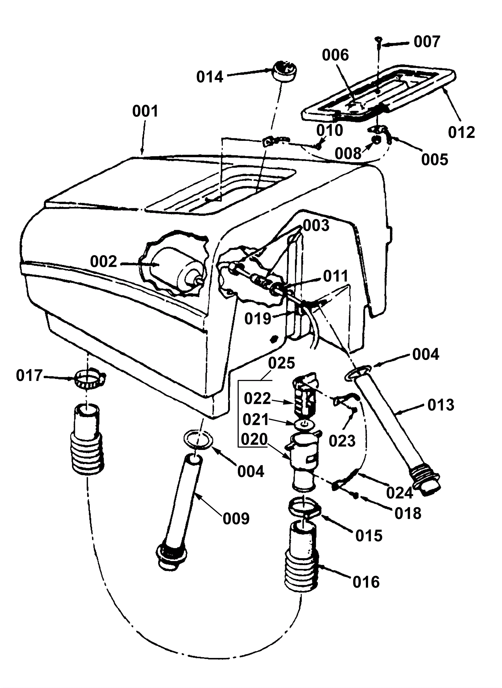 001 | 170-6031 | Recovery tank (OBSOLETE) | $724.90 | 1 |  | usually ships 1-5 days | 002 | 170-6032 | Float switch (OBSOLETE) | $143.22 | 1 |  | usually ships 13-18 days | 003 | 170-0292 | Strain relief | $16.35 | 1 |  | usually ships 12-15 days | 004 | 170-0273 | O-ring | $8.03 | 2 |  | ships same day | 005 | 172-2474 | 8 inch chain | $11.35 | 1 |  | usually ships 13-18 days | 006 | 170-0613 | Tank lid | $51.96 | 1 |  | ships same day | 007 | 999-0333 | Screw 10-24 x 1/2 pan head phillips stainless steel | $0.99 | 1 |  | ships same day | 008 | 999-0211 | Nut 5/16-18 hex nylon insert lock zinc plated | $0.99 | 1 |  | ships same day | 009 | 170-6037 | Vacuum tube (OBSOLETE) | $68.86 | 1 |  | usually ships 1-5 days | 010 | 999-0722 | Screw 1/4-20 x 3/8 pan head slotted thread cutting | $0.99 | 1 |  | ships same day | 011 | 170-6017 | Washer 1/2 NPT sealing | $14.41 | 1 |  | usually ships 13-18 days | 012 | 170-6038 | Tank lid gasket | $27.26 | 1 |  | usually ships 13-18 days | 013 | 170-6039 | Recovery tube (OBSOLETE) | $83.05 | 1 |  | usually ships 1-5 days | 014 | 170-0290 | Strainer (OBSOLETE) | $37.61 | 1 |  | usually ships 13-18 days | 015 | 164-0218 | Nylon hose clamp | $4.31 | 1 |  | usually ships 19-25 days | 016 | 170-6042 | Recovery hose (OBSOLETE) | $73.06 | 1 |  | usually ships 13-18 days | 017 | 997-2000 | Hose clamp | $2.37 | 1 |  | ships same day | 018 | 999-0576 | Screw 8-18 x 1/2 pan head phillips self-drilling ss | $0.99 | 1 |  | ships same day | 019 | 170-0294 | Nut 1/2 conduit lock | $12.89 | 1 |  | usually ships 13-18 days | 020 | 170-0043 | Drain valve | $27.26 | 1 |  | usually ships 13-18 days | 021 | 170-0032 | Drain valve gasket | $11.35 | 1 |  | ships same day | 022 | 170-0042 | Drain valve handle | $27.26 | 1 |  | usually ships 13-18 days | 023 | 999-0663 | Screw 10-24 x 3/8 pan head phillips thread cutting | $0.99 | 1 |  | ships same day | 024 | 170-0268 | Drain chain assembly | $12.89 | 1 |  | usually ships 13-18 days | 025 | 170-6048 | Drain valve assembly | $121.95 | 1 | (includes 020-022) | usually ships 13-18 days |