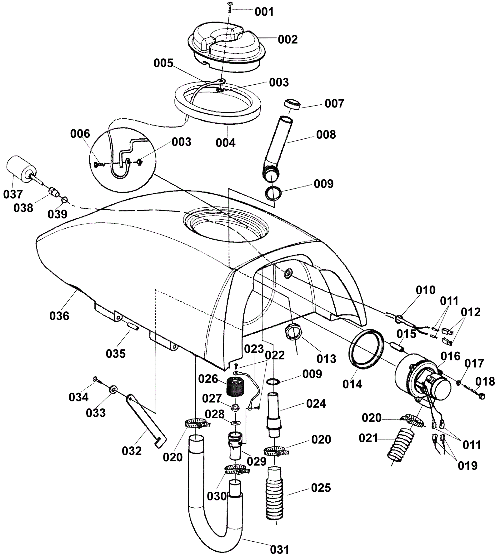Recovery tank drain hose |