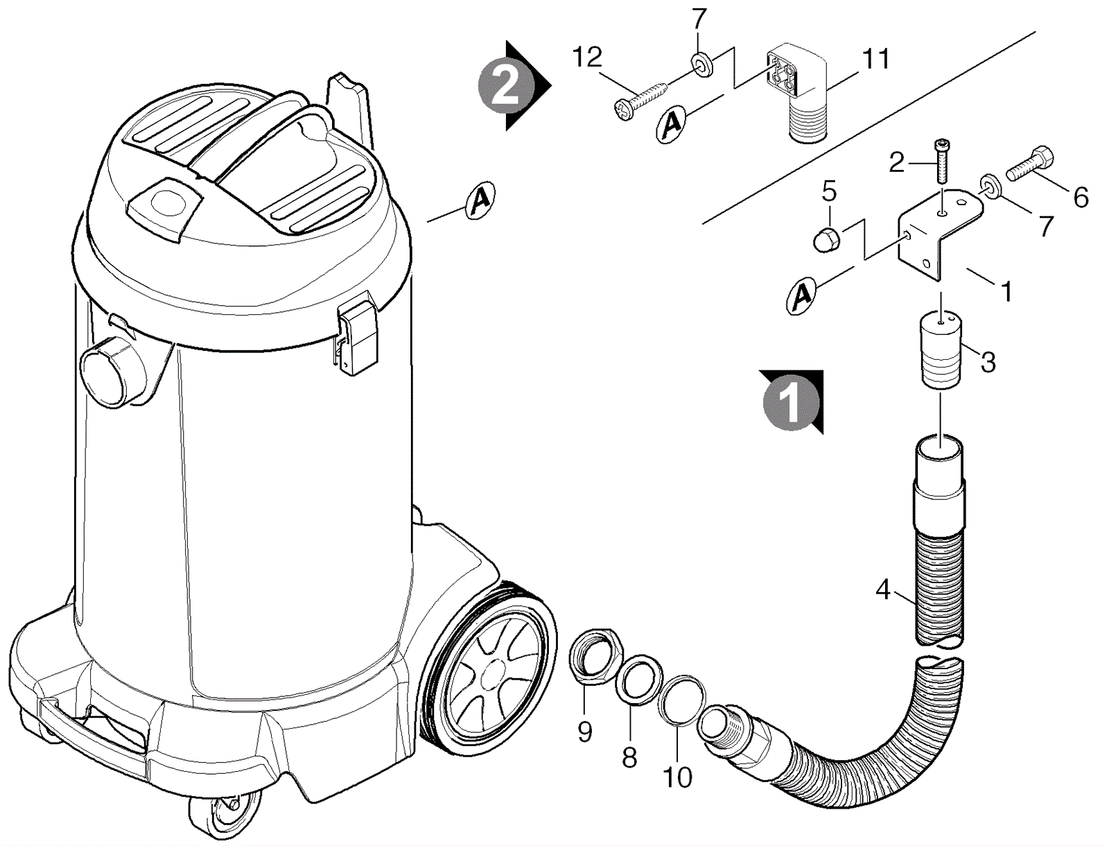Recovery tank drain hose |