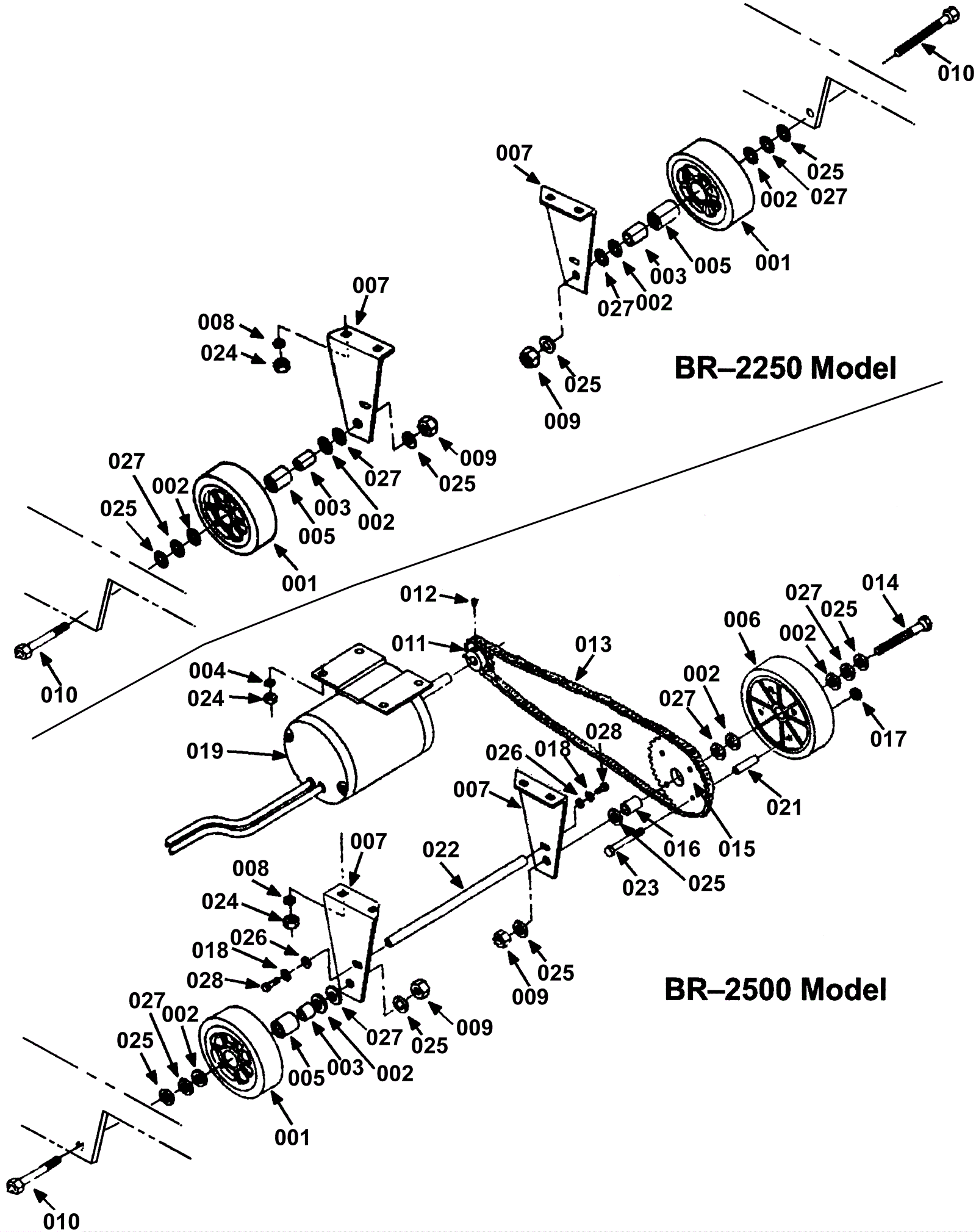 (BR-2500) (includes right side wheel, 003 and 005 - for left side wheel see reference 006) |