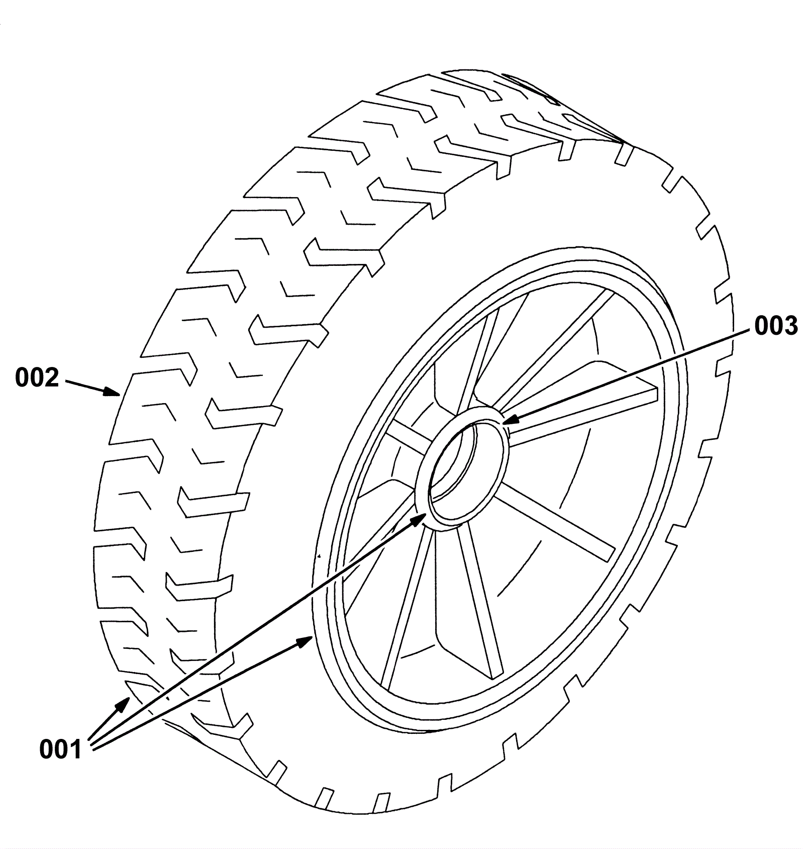 Solid Non Marking Turf Front Tire and Wheel Assembly