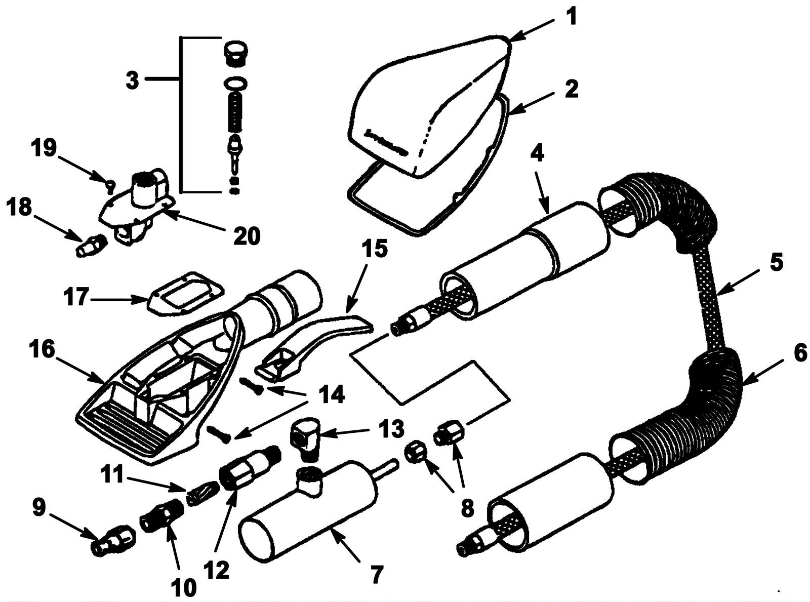 Vacuum hose without cuffs |
