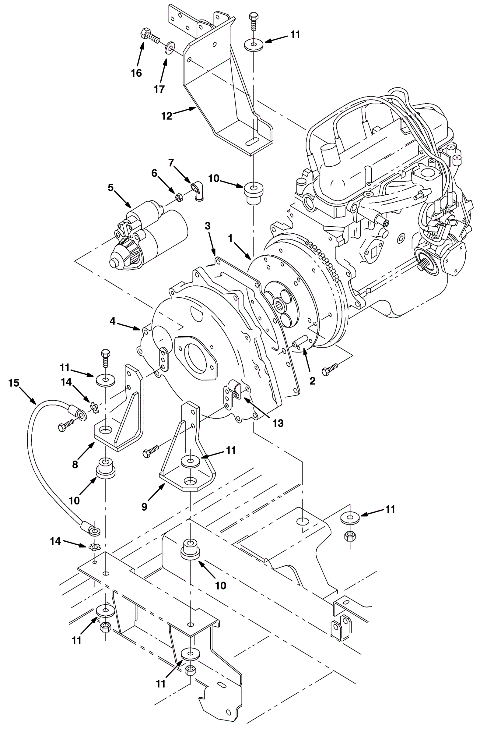 1 | 375-9140 | Drive coupling (Tennant Industrial) | $458.43 | 1 | (flywheel coupling) | usually ships 10-13 days | 2 | 275-7507 | DOWEL, CY. BLOCK TO FLYWHL HSG (Tennant Industrial) | $30.84 | 2 |  | usually ships 1-5 days | 4 | 275-7511 | HOUSING, FLYWHEEL (Tennant Industrial) | $555.28 | 1 |  | usually ships 1-5 days | 5 | 675-6585 | STARTER, 12VDC [FORD] (Tennant Industrial) | $1,059.78 | 1 |  | usually ships 10-13 days | 6 | 275-5476 | Nut M8 x 1.25 hex brass (Tennant Industrial) | $5.67 | 1 |  | usually ships 10-13 days | 7 | 175-2122 | 90 degree cable boot | $5.28 | 1 |  | usually ships 10-13 days | 8 | N/A | Not available | Call for price | 1 | (bracket) | usually ships 3-26 days | 9 | 275-7517 | BRACKET, MOUNTING, ENG, REAR LH (Tennant Industrial) | $83.67 | 1 |  | usually ships 1-5 days | 10 | 175-6823 | ISOLATOR, VIB, .50D  (Tennant Industrial) | $59.68 | 3 |  | usually ships 1-5 days | 11 | 175-3470 | Washer .53b 1.88d .12 steel plated | $5.28 | 6 |  | usually ships 10-13 days | 12a | 675-7756 | BRACKET KIT, CASTING, GAS/LPG [8200/10] (Tennant Industrial) | $1,489.64 | 1 | (before SN 001196) | usually ships 10-13 days | 12b | 675-6169 | BRACKET WLDT, MTG, ENG, FRONT, GAS (Tennant Industrial) | $1,097.22 | 1 | (SN 001196-009999) | usually ships 10-13 days | 13 | 175-2108 | P clamp | $5.15 | 1 |  | usually ships 1-5 days | 14 | 175-8943 | Washer 3/8 lock internal-external | $4.36 | 2 |  | usually ships 10-13 days | 15 | 275-7512 | WIRE ASSEMBLY (Tennant Industrial) | $30.34 | 1 |  | usually ships 1-5 days | 16 | 275-0025 | Screw M10-1.5 x 25 hex head 8.8 | $4.36 | 2 |  | usually ships 10-13 days | 17 | 999-0032 | Washer 3/8 USS flat plain finish | $2.42 | 2 |  | ships same day |