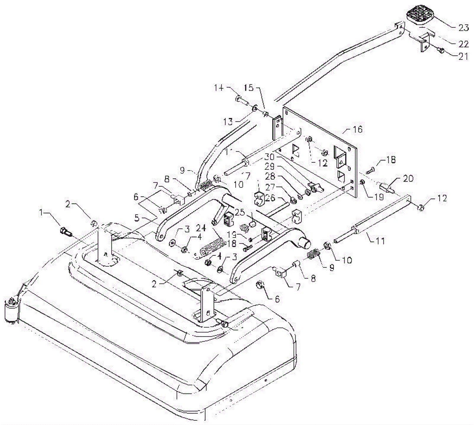 1 | 183-2145 | Bolt arm stud | $8.92 | 2 |  | usually ships 1-5 days | 2 | 999-1424 | Nut M8-1.25 hex stainless steel | $1.65 | 2 |  | ships same day | 3 | 183-2539 | Lock washer | $1.54 | 2 |  | usually ships 14-19 days | 4 | 183-8378 | Nut | $1.54 | 2 |  | usually ships 14-19 days | 5 | 183-9651 | Brush base control | $183.79 | 1 |  | usually ships 14-19 days | 6 | 183-8424 | Nut | $1.54 | 2 |  | usually ships 14-19 days | 7 | 183-8426 | Arm adjuster | $23.42 | 2 |  | usually ships 14-19 days | 8 | 183-8427 | Spring guide | $8.16 | 2 |  | usually ships 14-19 days | 9 | 183-8429 | Compression spring | $3.72 | 2 |  | usually ships 14-19 days | 10 | 183-8439 | Nut | $1.54 | 2 |  | usually ships 14-19 days | 11 | 183-9652 | Arm | $22.59 | 2 |  | usually ships 14-19 days | 12 | 999-1424 | Nut M8-1.25 hex stainless steel | $1.65 | 2 |  | ships same day | 13 | 999-9097 | Washer M8 flat stainless steel | $0.99 | 1 |  | ships same day | 14 | 183-9329 | Screw M8 x 30mm | $1.54 | 1 |  | usually ships 14-19 days | 15 | 999-1424 | Nut M8-1.25 hex stainless steel | $1.65 | 1 |  | ships same day | 16 | 183-9653 | Plate | $93.60 | 1 |  | usually ships 14-19 days | 17 | 183-7613 | Base control holder | $7.36 | 4 |  | usually ships 14-19 days | 18 | 183-8430 | Screw M6 x 70 | $1.54 | 8 |  | usually ships 14-19 days | 19 | 183-8256 | Nut | $1.54 | 8 |  | usually ships 14-19 days | 20 | 183-9655 | Spacer | Call for price | 1 |  | usually ships 14-19 days | 21 | 183-8432 | Screw M6 x 12 | $1.54 | 2 |  | usually ships 14-19 days | 22 | 183-8434 | Pedal plate | $14.07 | 1 |  | usually ships 14-19 days | 23 | 183-8433 | Pedal cover | $8.89 | 1 |  | usually ships 14-19 days | 24 | 183-4762 | Spring traction | $29.93 | 1 |  | usually ships 14-19 days | 25 | 183-4763 | Insert | $1.54 | 1 |  | usually ships 14-19 days | 26 | 183-4764 | Threaded tie rod | $10.64 | 1 |  | usually ships 14-19 days | 27 | 183-9116 | Spherical bushing bracket | $20.56 | 1 |  | usually ships 14-19 days | 28 | 183-4766 | Spherical bushing | $12.35 | 1 |  | usually ships 14-19 days | 29 | 183-4767 | Nut | $1.54 | 1 |  | usually ships 14-19 days | 30 | 183-4768 | Wing nut | $4.62 | 1 |  | usually ships 14-19 days |