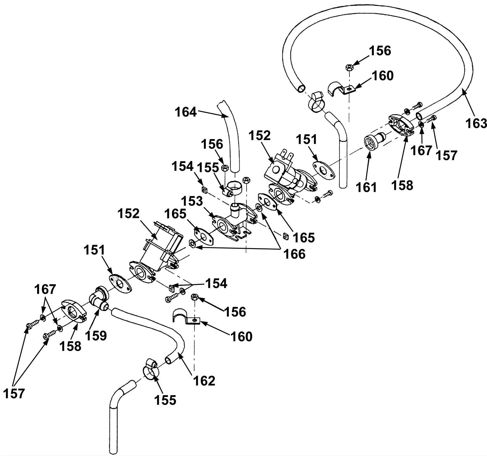 151 | 192-0914 | Gasket | $2.56 | 2 |  | ships same day | 152a | 192-5838 | Pulsing valve (OBSOLETE) | $556.97 | 2 |  | usually ships 1-5 days | 152b | 192-6012 | Repair set valve (OBSOLETE) | $30.68 |  |  | usually ships 1-5 days | 153 | 192-6995 | T support (OBSOLETE) | $4.30 | 1 |  | usually ships 1-5 days | 154 | 192-0915 | Nut M4 square | $3.47 | 8 |  | ships same day | 155 | 192-4377 | Hose clamp | $5.51 | 3 |  | usually ships 19-25 days | 156 | 192-0383 | Nut M5 hex | $0.89 | 4 |  | ships same day | 157 | 192-0912 | Screw M4 x 16mm raised head | $2.56 | 8 |  | ships same day | 158 | 192-0911 | Flange | $2.56 | 2 |  | ships same day | 159 | 192-0916 | Angled nipple | $9.87 | 1 |  | usually ships 19-25 days | 160 | 192-2810 | Clamp 1 x 5 (OBSOLETE) | $2.20 | 2 |  | usually ships 1-5 days | 161 | 192-0913 | Nipple | $3.10 | 1 |  | usually ships 19-25 days | 162 | 192-0404 | Wire reinforced hose (sold by the inch) | $0.99 | 40 in |  | ships same day | 163 | 192-0404 | Wire reinforced hose (sold by the inch) | $0.99 | 40 in |  | ships same day | 164 | 192-0404 | Wire reinforced hose (sold by the inch) | $0.99 | 40 in |  | ships same day | 165 | 192-1270 | Intermediate plate | $2.56 | 2 |  | usually ships 19-25 days | 166 | 192-1271 | Gasket | $1.22 | 2 |  | ships same day | 167 | 192-0149 | Washer | $2.56 | 8 |  | ships same day | N/S | 192-0102 | 7 3/4 inch cable tie | $2.56 | 2 |  | usually ships 19-25 days | N/S | 192-0973 | 3 1/4 inch cable tie | $2.56 | 4 |  | usually ships 19-25 days |