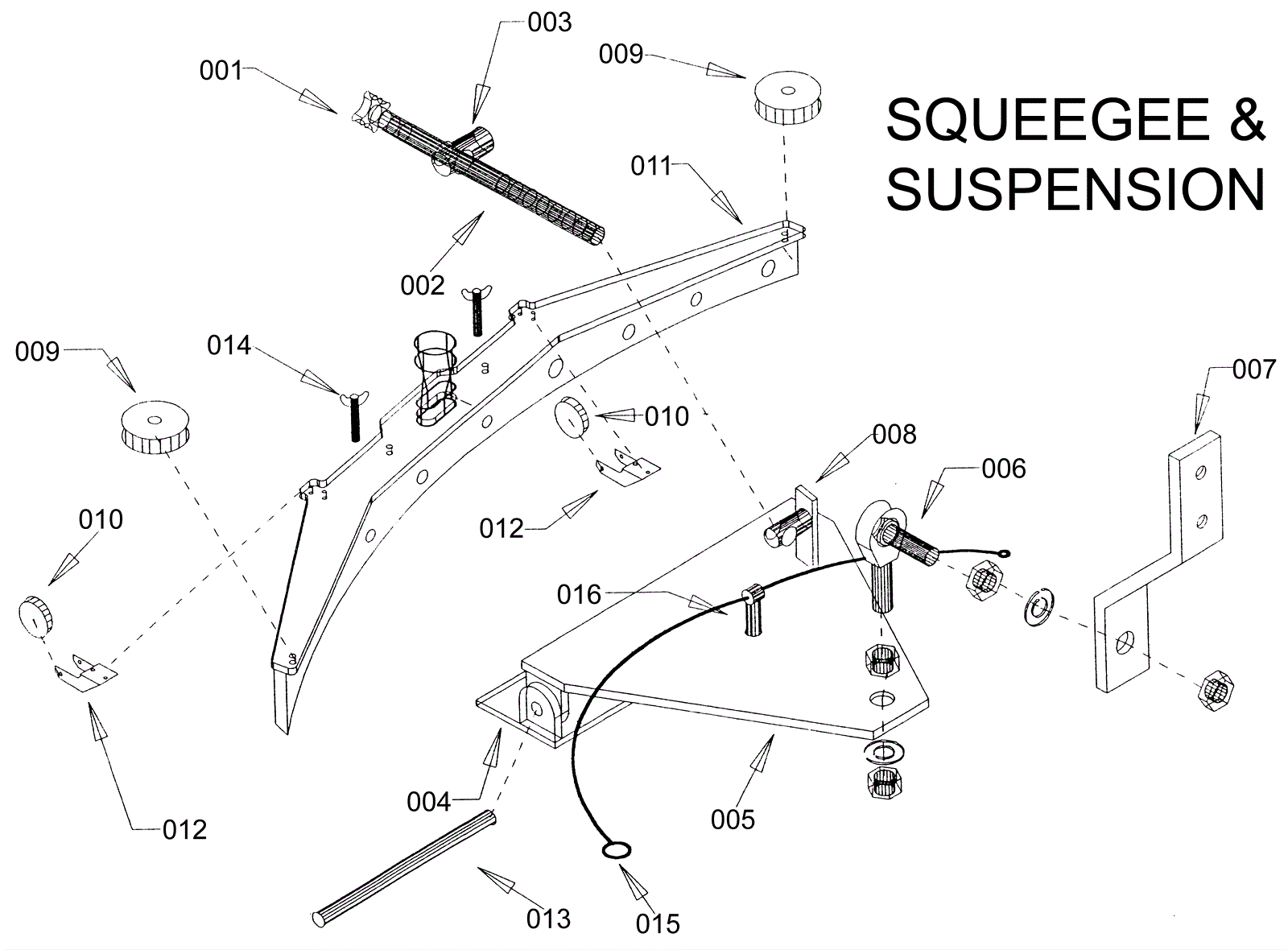 Squeegee swing limit cable with stop collars (OBSOLETE) |