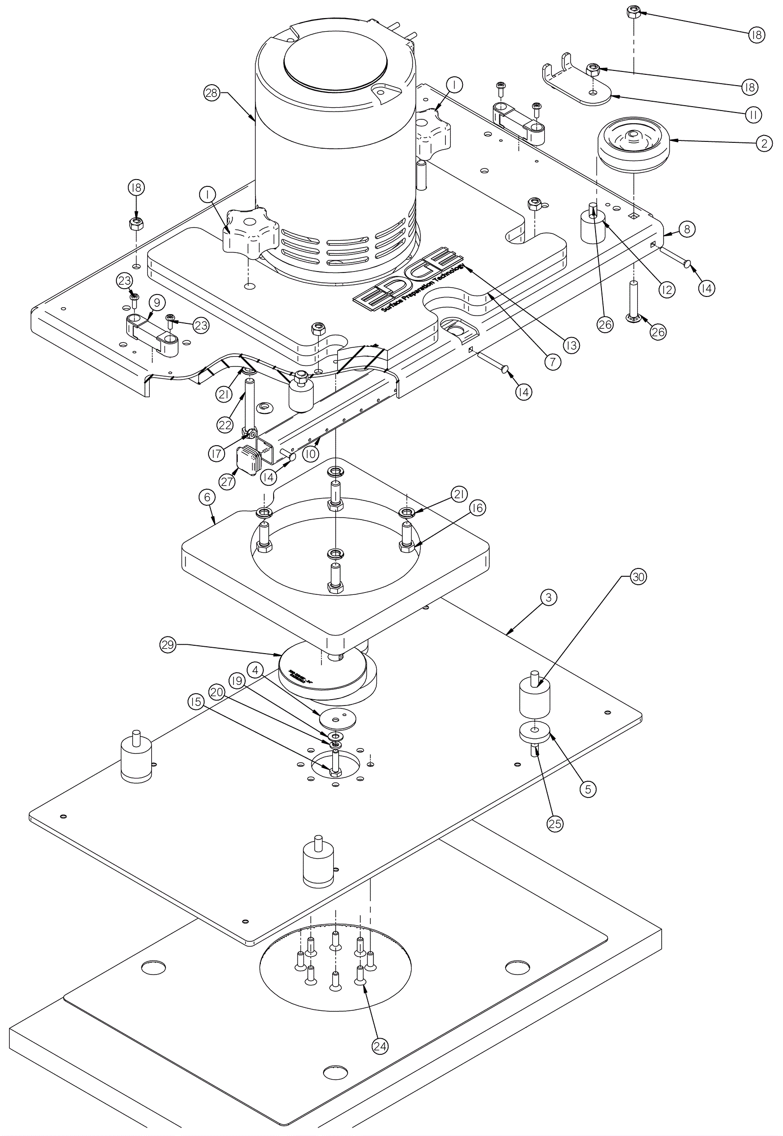 Eccentric kit with hardware and loctite for scrubbers |