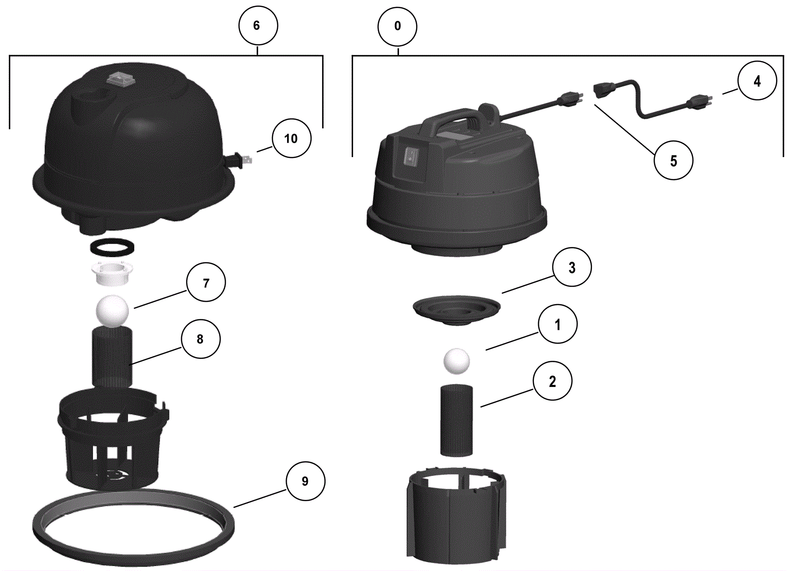 (Vacuum head assembly - cord reel model) (This has been replaced with 0 and will not fit the tank that went with the domed style. Must also order 6b and 6c if needing to replace vacuum head) |