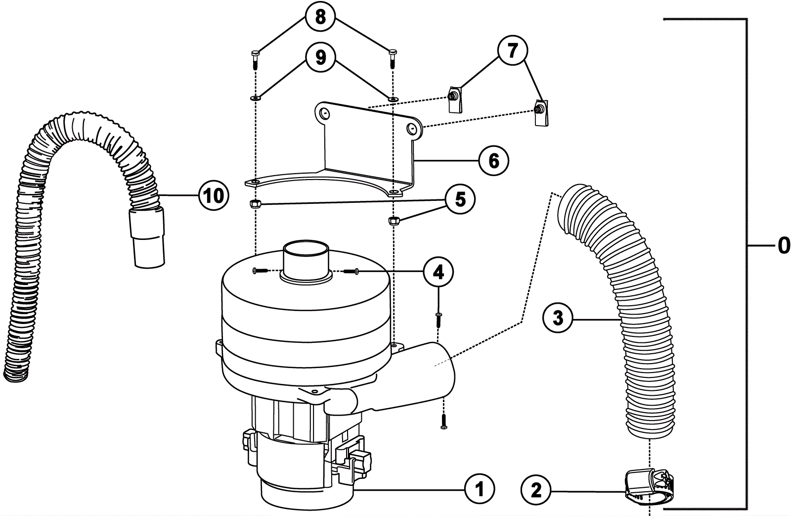 Vacuum motor hose with short cuff |