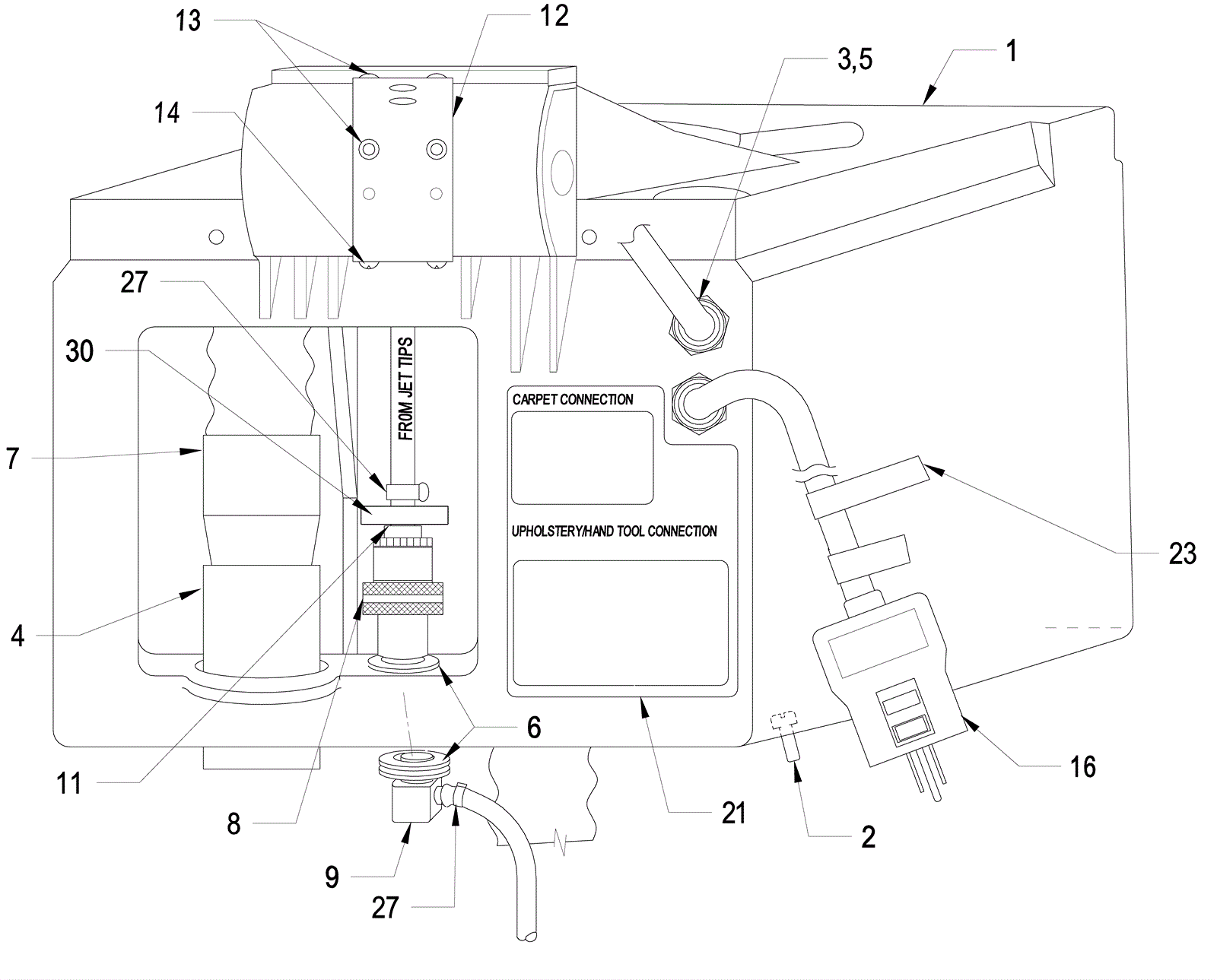 Main support with striker and vacuum elbow |