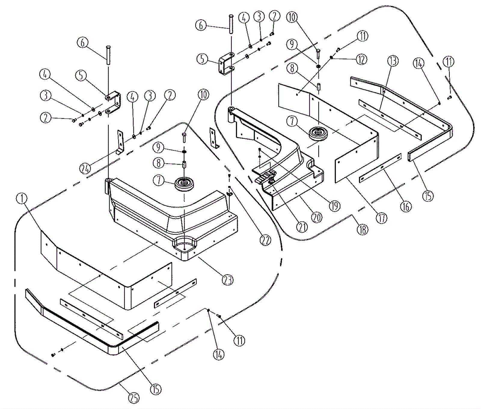 1a | 240-0920 | 24 inch right side bumper | $39.57 | 1 | (24T) | usually ships 13-18 days | 1b | 240-0921 | 26 inch right side bumper | $37.94 | 1 | (26T) | usually ships 13-18 days | 1c | 240-0922 | 28 inch right side bumper | $47.12 | 1 | (28T) | ships same day | 2 | 999-1383 | Screw M6-1 x 16mm hex head stainless steel | $3.96 | 8 |  | ships same day | 3 | 240-0411 | Washer M6 locking | $11.32 | 8 |  | usually ships 13-18 days | 4 | 999-1261 | Washer M6 flat stainless steel | $0.99 | 8 |  | ships same day | 5 | 240-0923 | Skirt mount bracket | $14.95 | 2 |  | usually ships 13-18 days | 6 | 240-0924 | Skirt pin | $16.93 | 2 |  | ships same day | 7 | 240-0468 | Wheel | $22.32 | 2 |  | ships same day | 8 | 240-0469 | Bushing | $11.32 | 2 |  | usually ships 13-18 days | 9 | 999-9097 | Washer M8 flat stainless steel | $0.99 | 2 |  | ships same day | 10 | 240-0361 | Bolt M8 x 40mm | $11.32 | 2 |  | usually ships 13-18 days | 11 | 240-0067 | Screw M5 x 16mm | $11.32 | 18 |  | usually ships 13-18 days | 12 | 240-0925 | Washer M5 plain finish | $11.32 | 4 |  | usually ships 1-5 days | 13a | 240-0926 | 24 inch bumper clamp | $16.93 | 2 | (24T) | usually ships 1-5 days | 13b | 240-0927 | 26 inch bumper clamp | $16.93 | 2 | (26T) | usually ships 1-5 days | 13c | 240-0928 | 28 inch bumper clamp | $8.53 | 2 | (28T) | usually ships 13-18 days | 14 | 240-0472 | Washer M5 x M11 plain finish | $11.32 | 14 |  | usually ships 13-18 days | 15a | 240-0929 | 24 inch bumper grip (OBSOLETE) | $10.89 | 2 | (24T) | usually ships 13-18 days | 15b | 240-0930 | 26 inch bumper grip (OBSOLETE) | $14.30 | 4 | (26T) | usually ships 13-18 days | 15c | 240-0931 | 28 inch bumper grip (OBSOLETE) | $15.40 | 2 | (28T) | usually ships 13-18 days | 16a | 240-0932 | 24 inch bumper clamp | $16.93 | 2 | (24T) | usually ships 1-5 days | 16b | 240-0933 | 28 inch bumper clamp | $27.91 | 2 | (28T) | usually ships 13-18 days | 17a | 240-0934 | 24 inch left side bumper | $54.66 | 1 | (24T) | usually ships 1-5 days | 17b | 240-0935 | 26 inch left side bumper | $48.77 | 1 | (26T) | usually ships 13-18 days | 17c | 240-0936 | 28 inch left side bumper | $42.87 | 1 | (28T) | ships same day | 18a | 240-0937 | 24 inch right side skirt assembly | $196.02 | 1 | (24T) (includes 2-17, 19-21) | usually ships 13-18 days | 18b | 240-0938 | 26 inch right side skirt assembly | $205.39 | 1 | (26T) (includes 2-17, 19-21) | ships same day | 18c | 240-0939 | 28 inch right side skirt assembly | $223.76 | 1 | (28T) (includes 2-17, 19-21) | usually ships 13-18 days | 19 | 240-0940 | Screw M4 x 8mm | $11.32 | 4 |  | usually ships 13-18 days | 20a | N/A | Not available | Call for price | 1 | (right skirt) (24T) | usually ships 3-26 days | 20b | 240-0938 | 26 inch right side skirt assembly | $205.39 | 1 | (26T) | ships same day | 20c | N/A | Not available | Call for price | 1 | (right skirt) (28T) | usually ships 3-26 days | 21 | 240-0941 | Hood latch | $16.93 | 1 |  | ships same day | 22 | 240-0942 | Washer M4 lock | $11.32 | 4 |  | usually ships 13-18 days | 23a | N/A | Not available | Call for price | 1 | (left skirt) (24T) | usually ships 3-26 days | 23b | N/A | Not available | Call for price | 1 | (left skirt) (26T) | usually ships 3-26 days | 23c | N/A | Not available | Call for price | 1 | (left skirt) (28T) | usually ships 3-26 days | 24 | 240-0943 | Skirt block | $11.32 | 2 |  | usually ships 13-18 days | 25a | 240-0944 | 24 inch left side skirt assembly | $179.27 | 1 | (24T) (includes 1-11, 14-15, 22-24) | usually ships 13-18 days | 25b | 240-0945 | 26 inch left side skirt assembly | $196.02 | 1 | (26T) (includes 1-11, 14-15, 22-24) | usually ships 13-18 days | 25c | 240-0946 | 28 inch left side skirt assembly | $205.39 | 1 | (28T) (includes 1-11, 14-15, 22-24) | ships same day |