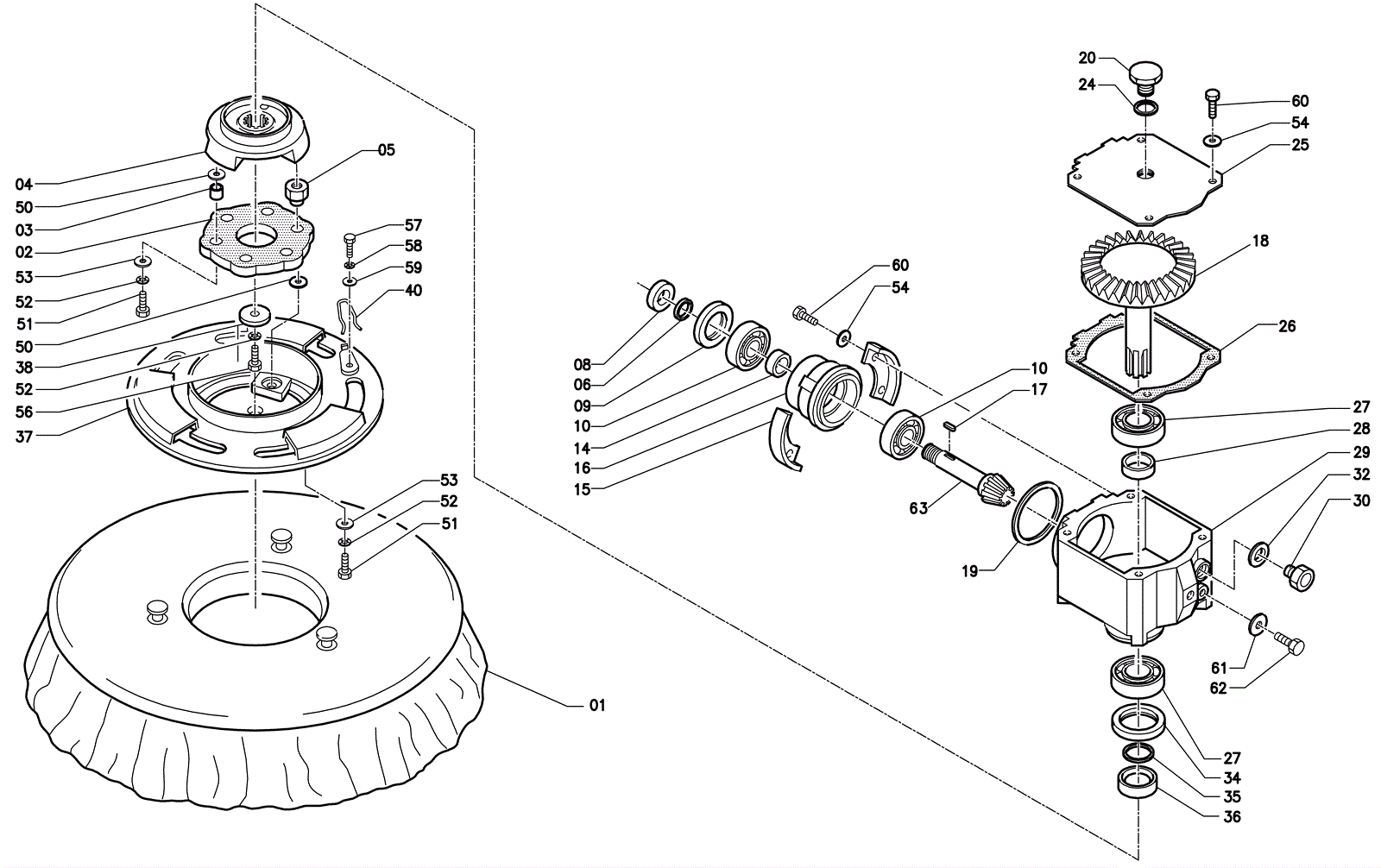 Left hand bevel gear |