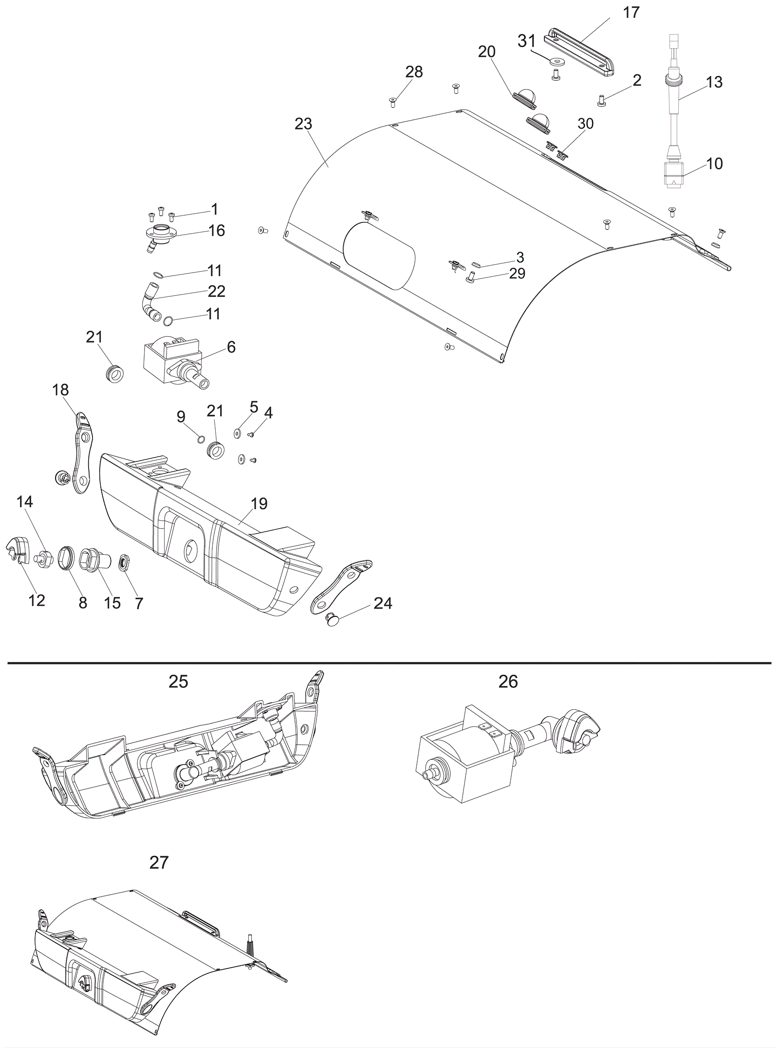 1 | 251-2133 | Screw | $1.10 | 3 |  | ships same day | 2 | 999-0901 | Screw M5-.8 x 16mm pan head phillips stainless steel | $0.99 | 2 |  | ships same day | 3 | 251-2068 | Bridge washer | $2.75 | 2 |  | usually ships 14-19 days | 4 | 251-2190 | Screw | $1.10 | 2 |  | usually ships 14-19 days | 5 | 251-2189 | Washer | $1.17 | 2 |  | usually ships 14-19 days | 6 | 251-2063 | 110V pump | $163.66 | 1 |  | usually ships 14-19 days | 7 | 251-2060 | Nozzle seal | $5.50 | 1 |  | ships same day | 8 | 251-2053 | Pump spacer | $2.31 | 1 |  | ships same day | 9 | 251-2071 | Pump o-ring | $2.20 | 1 |  | usually ships 14-19 days | 10 | 251-2257 | Nut | $2.75 | 1 |  | usually ships 14-19 days | 11 | 251-2072 | Hose clip | $2.20 | 2 |  | usually ships 14-19 days | 12 | 251-2057 | Rubber boot | $13.95 | 1 |  | ships same day | 13 | 251-2073 | Cable gland | $14.21 | 1 |  | usually ships 14-19 days | 14a | 251-2055 | Nozzle assembly | $125.15 | 1 | (Trio 15) | usually ships 14-19 days | 14b | 251-2056 | Nozzle | $144.41 | 1 | (Trio 20) | ships same day | 15 | 251-2061 | Nozzle adaptor | $16.17 | 1 |  | usually ships 14-19 days | 16 | 251-2058 | Female valve | $5.50 | 1 |  | usually ships 14-19 days | 17 | 251-2258 | Lock | $9.16 | 1 |  | usually ships 14-19 days | 18 | 251-2052 | Strap | $11.55 | 2 |  | ships same day | 19 | 251-2051 | Pump cover | $82.50 | 1 |  | usually ships 14-19 days | 20 | 251-2259 | Circuit breaker cap | $4.62 | 2 |  | usually ships 14-19 days | 21 | 251-2062 | Pump support ring | $5.50 | 2 |  | usually ships 14-19 days | 22 | 251-2059 | Pump hose | $5.69 | 1 |  | usually ships 14-19 days | 23 | 251-2260 | Cover | $357.57 | 1 |  | usually ships 14-19 days | 24 | 251-2054 | Strap lock | $5.50 | 2 |  | usually ships 14-19 days | 25 | 251-2075 | Pump cover assembly | $247.50 | 1 | (Includes 1, 4-9, 11-12, 14, 16, 18-19, 21-22 and 24) | usually ships 14-19 days | 26 | 251-2070 | 110V pump assembly | $279.18 | 1 | (Includes 1, 4-6, 11, 16 and 21-22) | usually ships 14-19 days | 27 | 251-2261 | Cover assembly | $909.32 | 1 | (Includes 1-31) | usually ships 14-19 days | 28 | 999-1556 | Screw M4-.7 x 8mm pan head phillips zinc plated | $0.99 | 8 |  | ships same day | 29 | 999-1645 | Screw M4-.7 x 12mm hex head stainless steel | $1.29 | 2 |  | ships same day | 30 | 251-2262 | LED lense | $1.65 | 2 |  | usually ships 14-19 days | 31 | 251-2263 | Washer | $2.20 | 2 |  | usually ships 14-19 days |