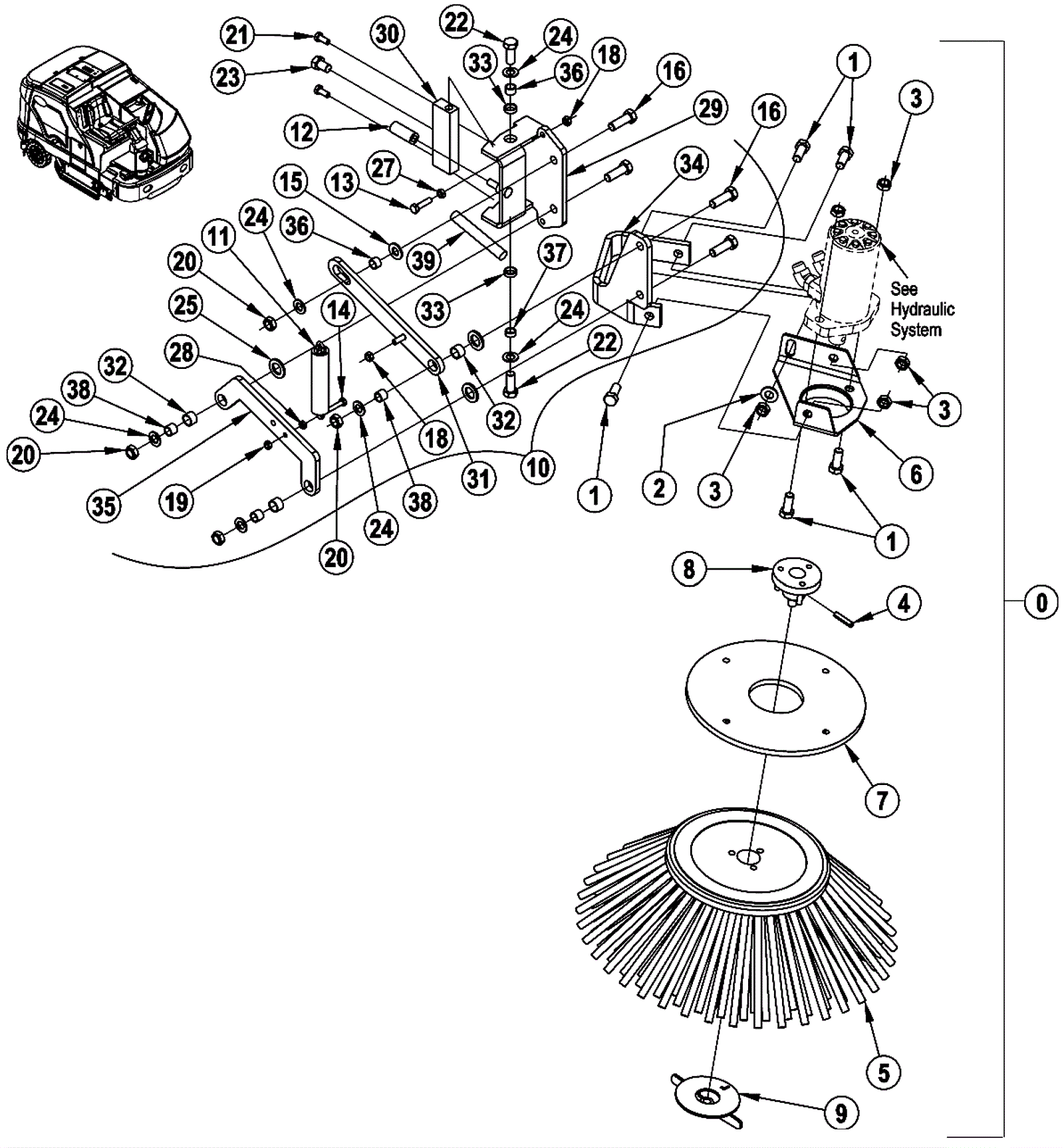 Left hand side broom bracket weldment |
