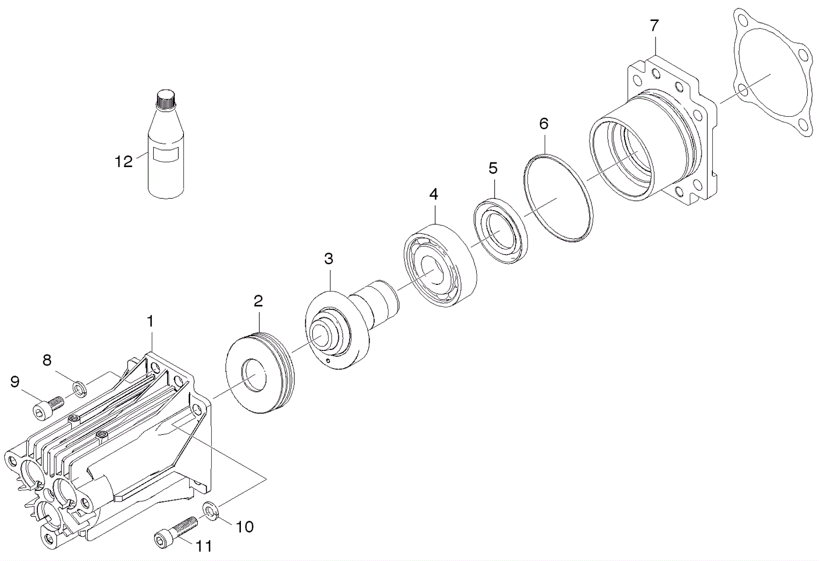 Short oil housing and piston guide |