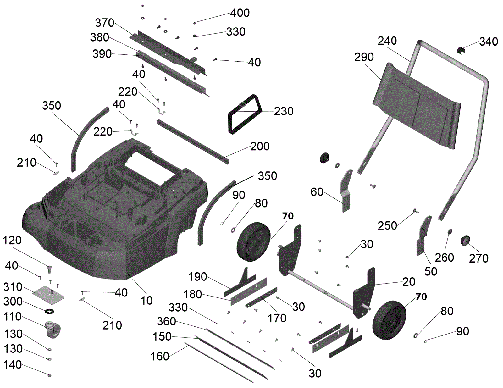 Sweep roller chest skirting component |