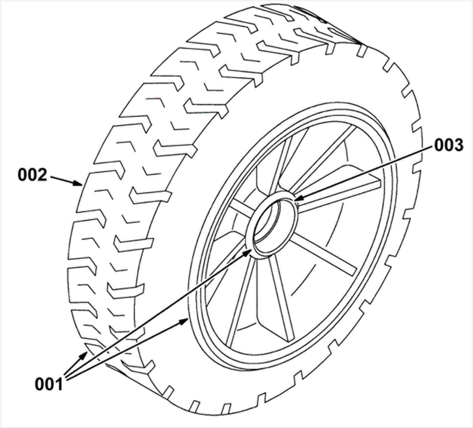 Solid Non Marking Turf Front Tire and Wheel Assembly