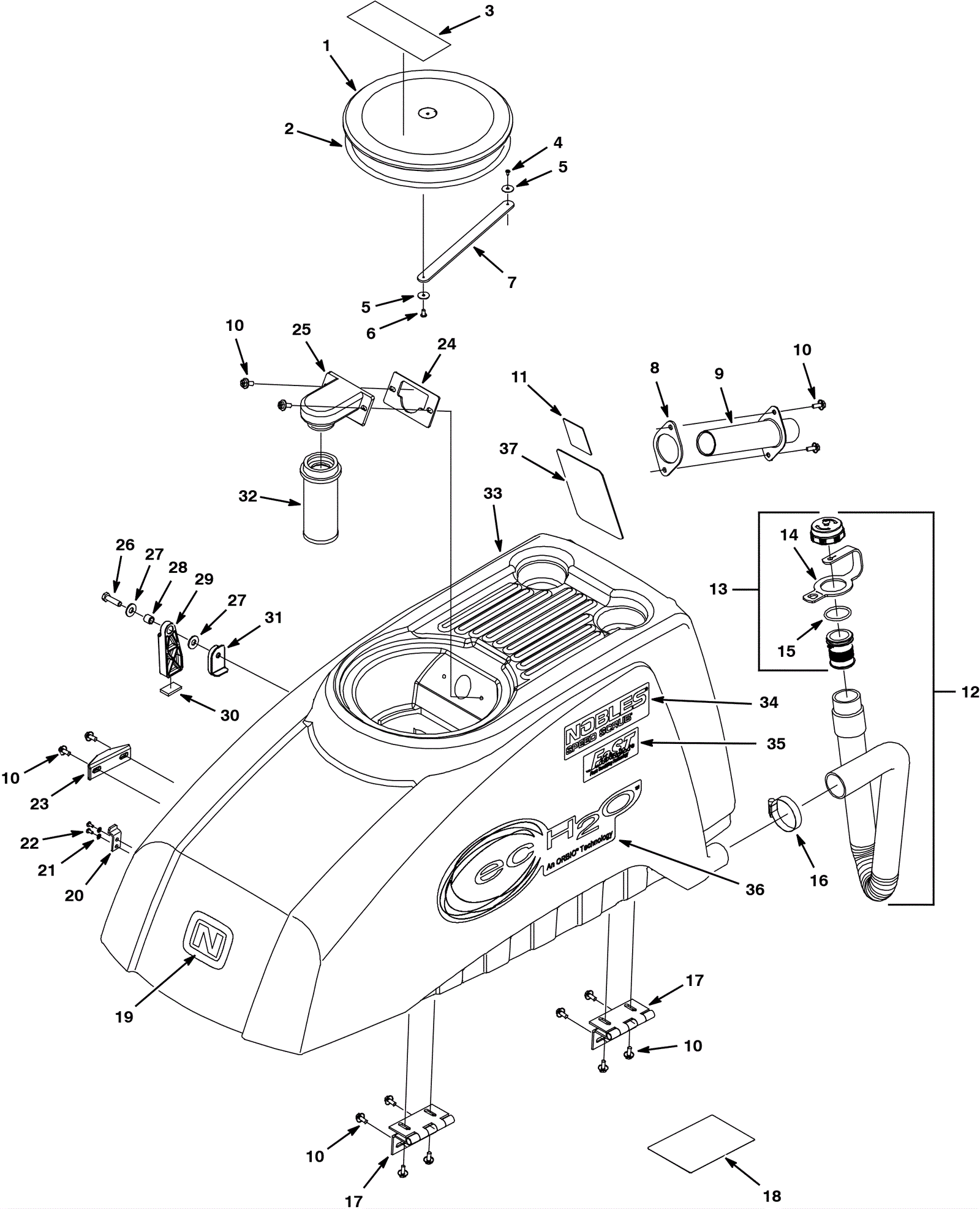Recovery tank lid assembly (lid, gasket, & label) |
