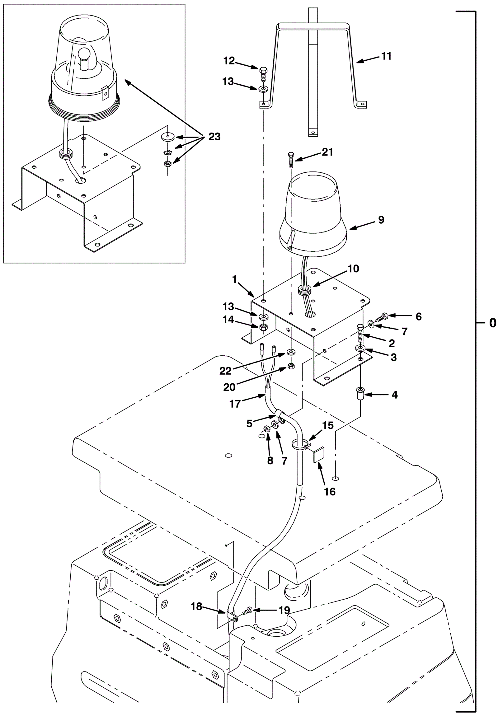 Revolving/flashing light guard weldment |