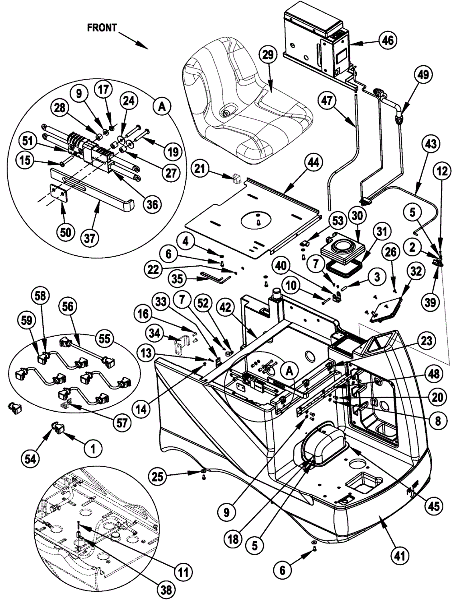 (includes 56-59) (Battery cables are not included after SN 1688856, but battery connector kit 272-1470 can be ordered seperately if battery connectors are desired) |