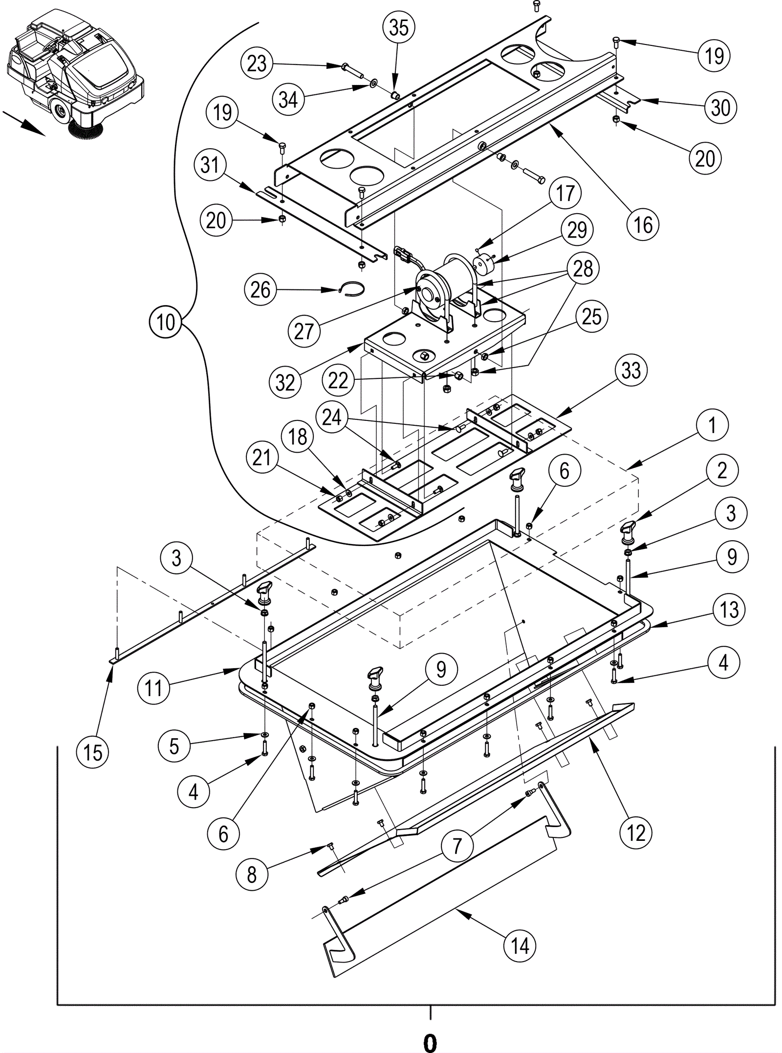 (As of SN 2005947 this hardware has been changed from 1/2-13 to 3/8-16. When replacing any one 1/2 inch harware component such as 22, 23, or 25, you will need to order a quantity of 2 of 22, 23, 25, 34, and 35.) |