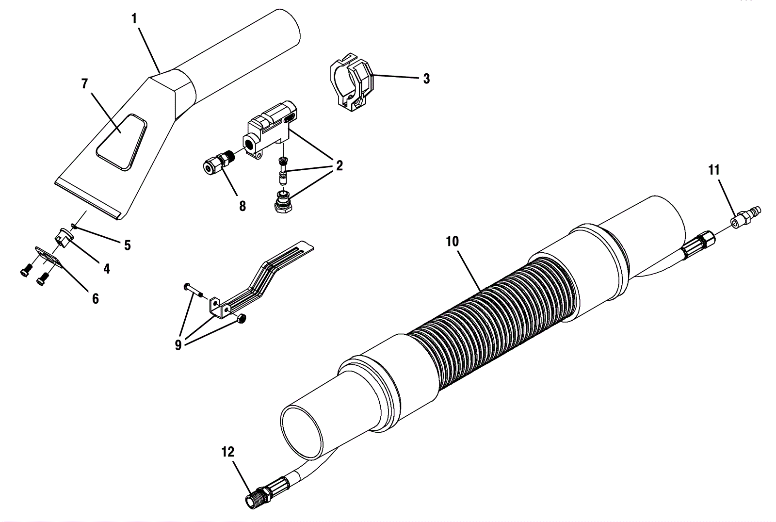 4 inch metal hand tool assembly with trigger and hose |