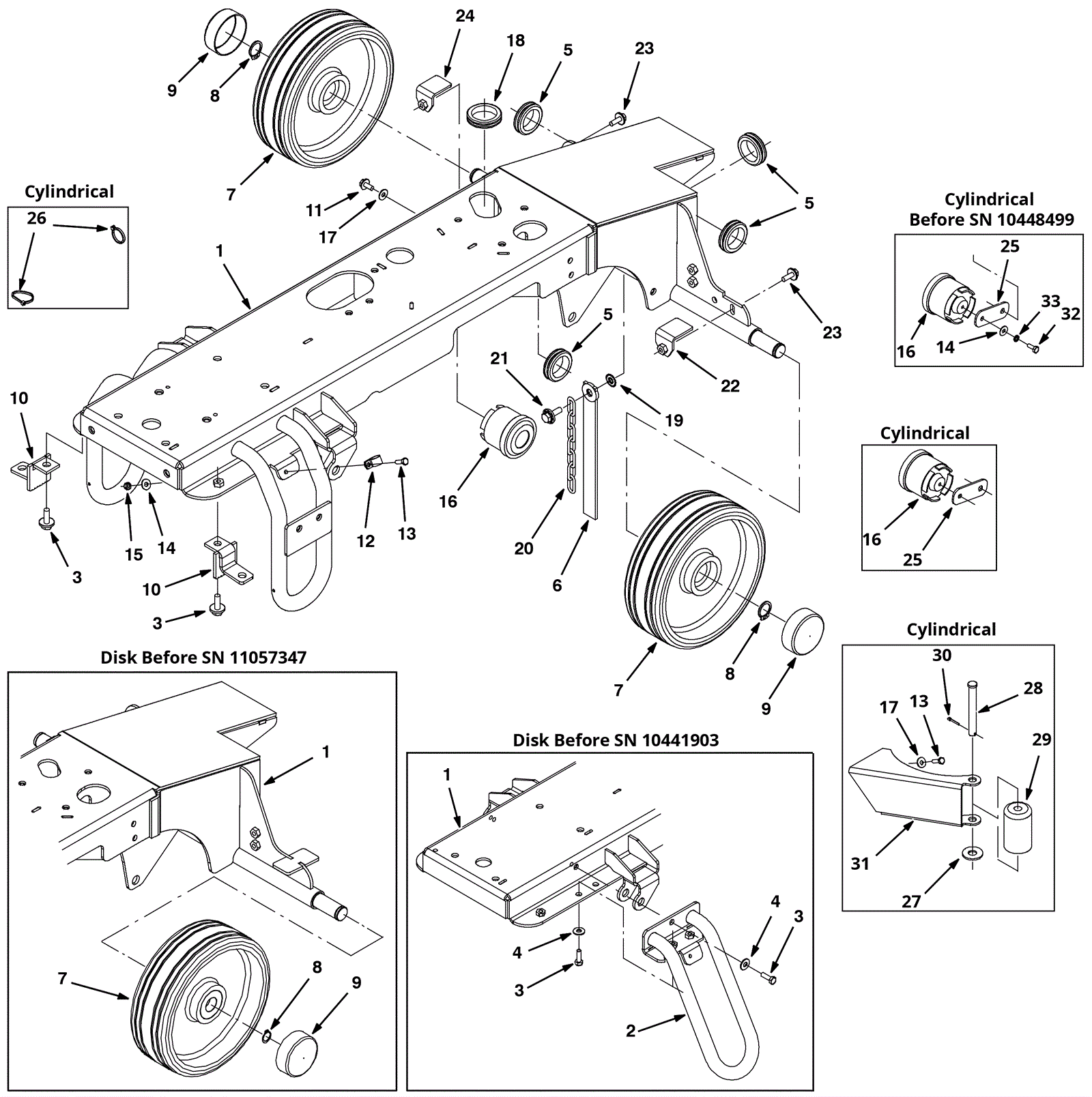 (frame weldment) (disk) (before SN 10441903) (replaced by 1a, qty 2 of 3a and 8a, and qty 1 of 22 and 24) |