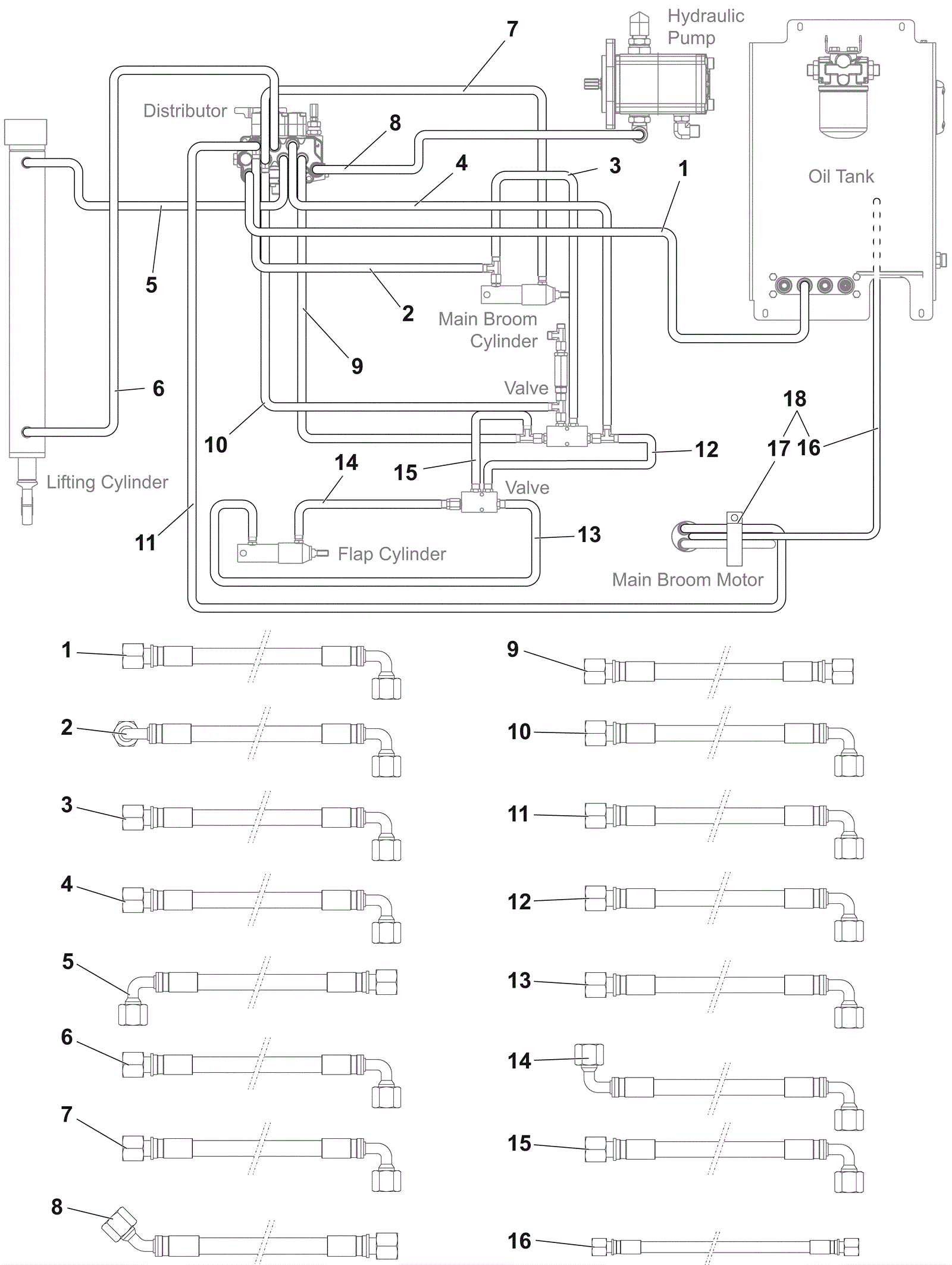 Main broom drain hose kit |